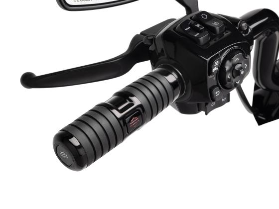 • Three heat settings - HIGH/MEDIUM/LOW - are controlled by left hand grip button or touch screen and indicated through the motorcycle display screen
