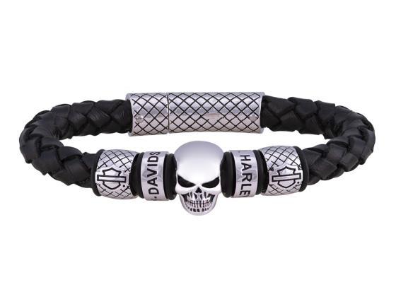 Skull Black Braided Leather Bracelet