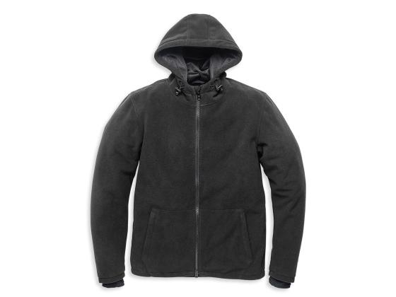 Don't let weather get in the way of your next ride—stay warm, dry, and visible with this waterproof fleece jacket. It's loaded with sensible features like stretch fleece, adjustable waist & hood and reflective material. Also has a secure interior pocket with a rubber media port. Finished with our Skull logo on back as a reflective appliqué for added texture and visibility.
