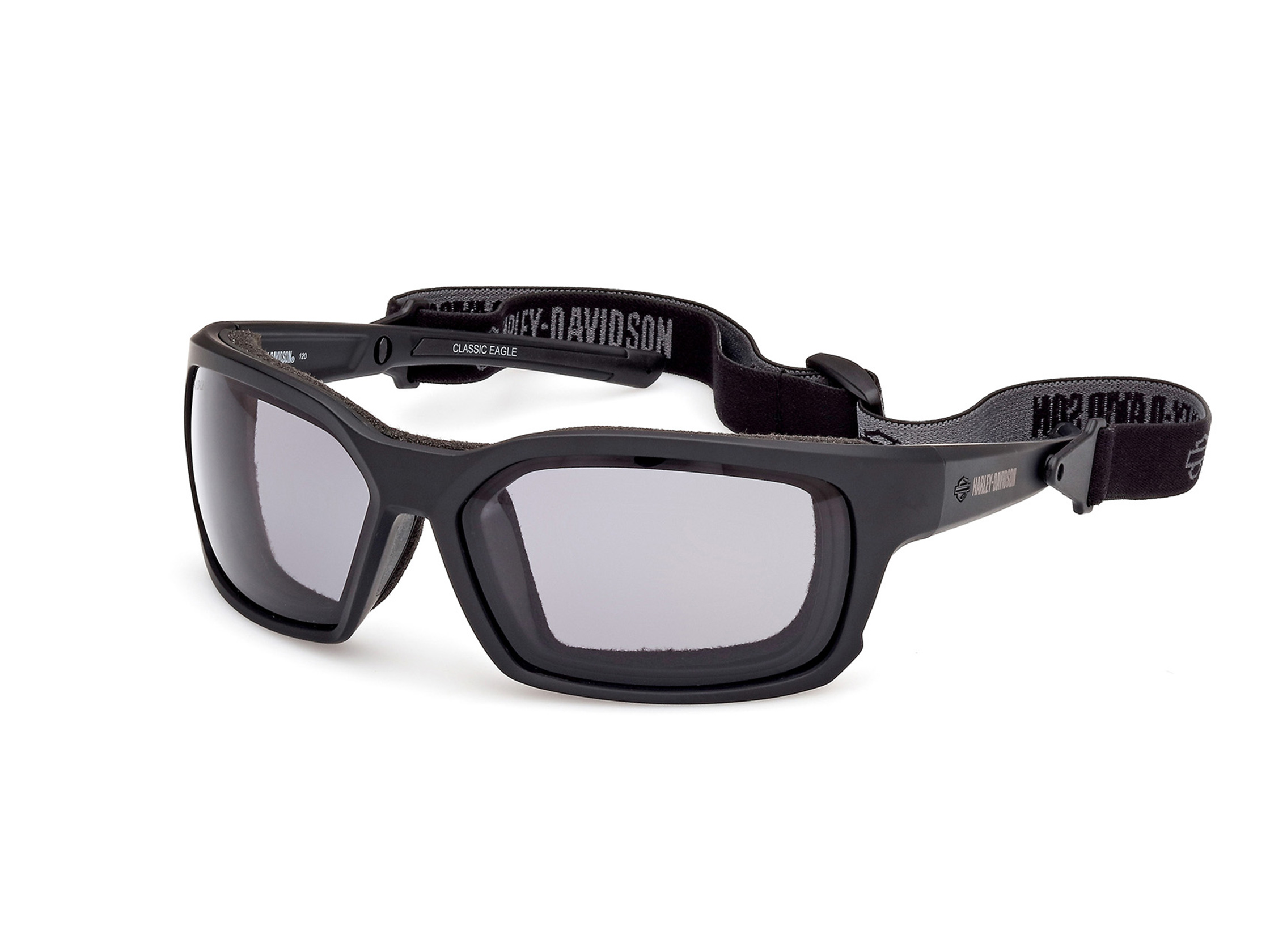 CLASSIC EAGLE 2.0 - For eagle-eyed vision on the road. This pair of glasses is not just a stylish eye-catcher but also a true performance marvel for your rides. The matte black sport frame fits comfortably around the face and, thanks to the adjustable nose pad and included T-Peg strap, sits rock solid even at high speeds. The photochromic lenses with polarization and color contrast technology automatically adapt to the light conditions and deliver razor-sharp vision - whether in sunlight, shade, or on reflective roads.