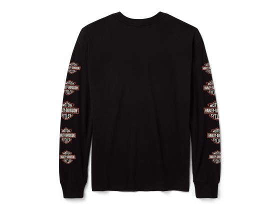 If every ride is your therapy, you'll wanna add the limited-edition H-D® State of Mind Long Sleeve Tee to your collection. It's built for breathable comfort from super soft cotton jersey with rib-knitting on the neckline and cuffs to help keep its shape. Custom graphics in a vintage-inspired, line art style are parked on front and riding down both sleeves. Get this one-of-a-kind-look while supplies last.