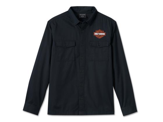 This Bar & Shield Shirt is the definition of effortless style and premium comfort. Made from 100% cotton twill that's never stiff or constricting because it's pre-washed for a lived-in feel at mile marker 1. Branded with our most iconic logo in an embroidered appliqué for an understated, authentic H-D" look.