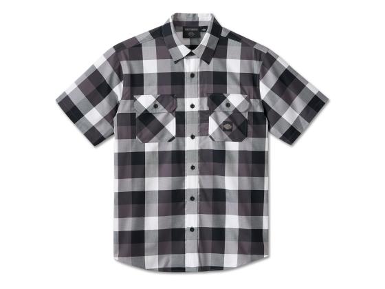 From rallies and road trips to date nights and workdays, you'll want to make the Bar & Shield Wrinkle Resistant Short Sleeve Shirt your new go-to. Its cotton poplin build has spandex for added stretch plus a wrinkle-resistant resin finish, so it's an ideal pack-along piece. This short sleeve men's button-down delivers a relaxed fit and features a shirttail hem that looks great tucked or untucked. Its plaid pattern is a perfect backdrop for the jersey Bar & Shield patch that fills the back.