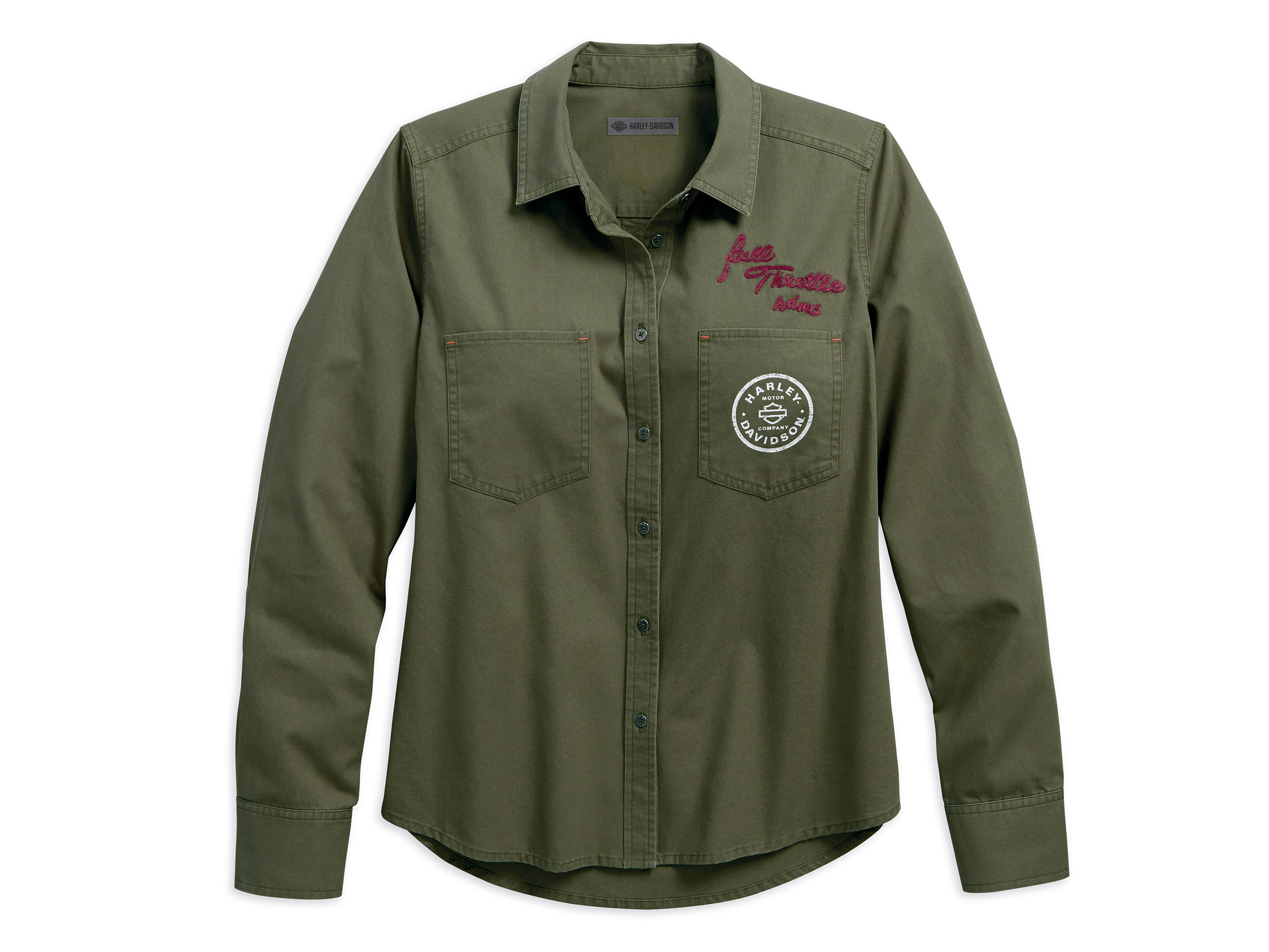 This one says so much in just two embroidered words. Our Full Throttle Canvas Shirt features unique chain stitch embroidery and distressed graphics. Rugged canvas with a heavy enzyme wash pushes the worn-in vibe. Try this women's long sleeve top as a lightweight layer over a tank or cami.