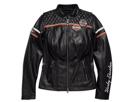 Fit & Mobility: Action back. Pre-curved sleeves. Snap waist tabs. Two back hip release zippers. Classic Fit is cut looser to be more comfortable and relaxed on the body. Ride-Enhancing Features: EN 1621-1 CE-approved removable body armor at elbows and shoulders. Back body armor pocket fits CE Level 1 Back Armor (98150-17VR, sold separately). Two-way zipper front. Zipper cuffs. Padded back waist, shoulders, and back yoke. Pockets: Zipper hand-warmer pockets. One zipper vertical interior pocket. Design Details: Leather patches and embroidered graphics Materials: Midweight abrasion-resistant cowhide leather. Polyester mesh lining. Certification: Meets or exceeds CE requirements in abrasion resistance, impact testing, and seam bursting for personal protective clothing.
