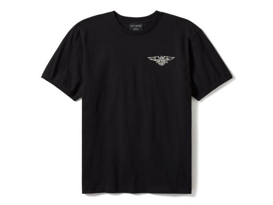 This favorite casual look shares a lane with a creative legacy in the Willie G Bar & Shield Sketch Art Ringer Tee. Its relaxed fit is cut from heavyweight cotton jersey that's enzyme washed for a well-worn look and feel. True to a ringer silhouette, this unisex t-shirt features a contrast neckline and cuffs. It showcases genuine Willie G style inspired by our most notable Bar & Shield. Part of the Willie G Sketch Collection of authentically made in USA garments that feature hand-drawn and signed artwork by our iconic designer, Willie G. Davidson.
