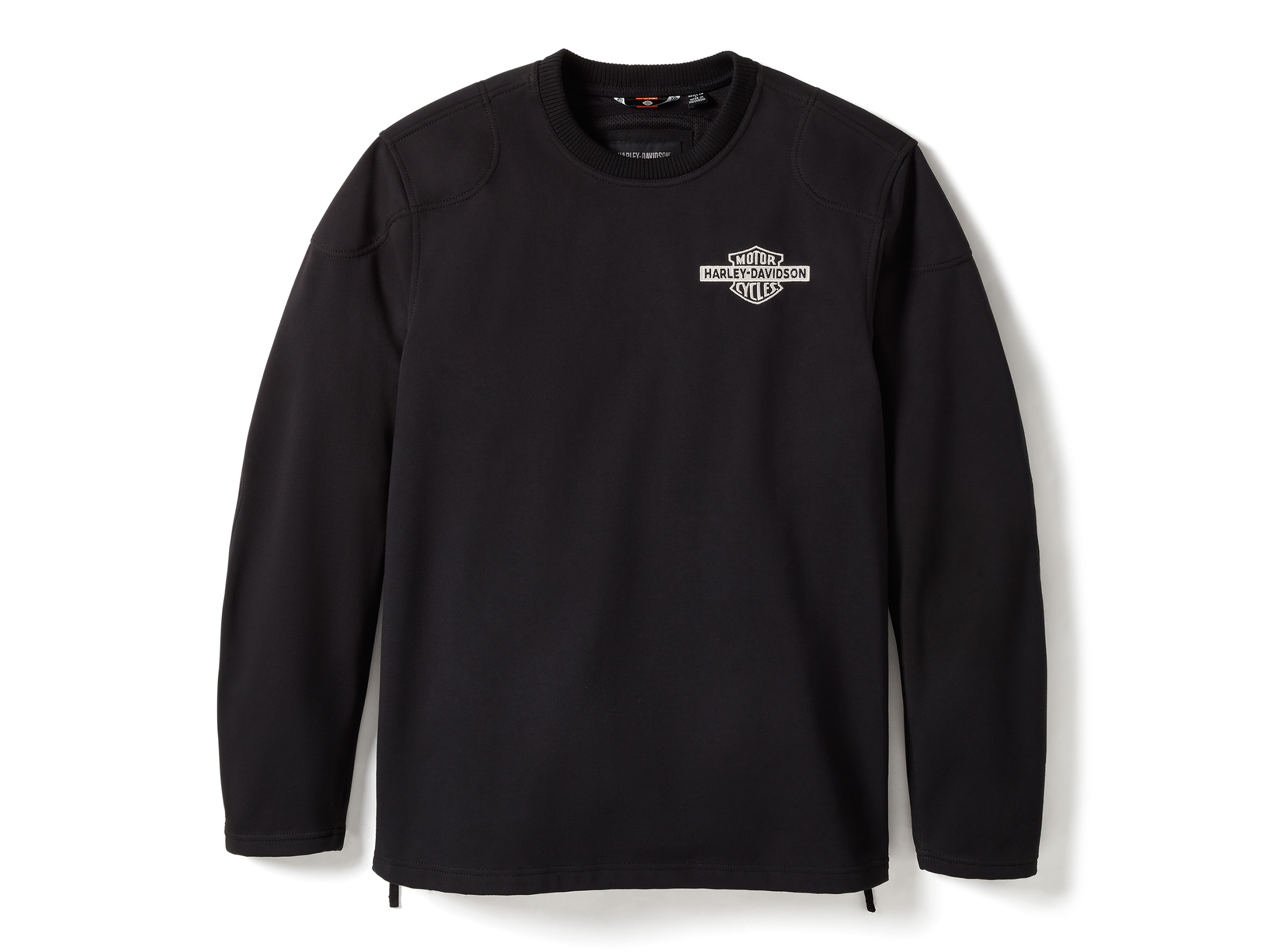 Casual, crew neck style meets enhanced riding protection in this latest H-D® Deflector Riding Fleece. Its wisely engineered design is windproof and loaded with features like air-loving vents, reflective material to enhance visibility, and a lower back pocket for securing essentials. Its laminated fleece build has D3O® Ghost" armor included in the shoulders and elbows for impact protection. This men's motorcycling top is also tested and certified to meet abrasion, tear, and seam strength requirements. The embroidered Bar & Shield showcased here is our earlier version from the 1920s. See all its specs below, then order this innovative style now.
