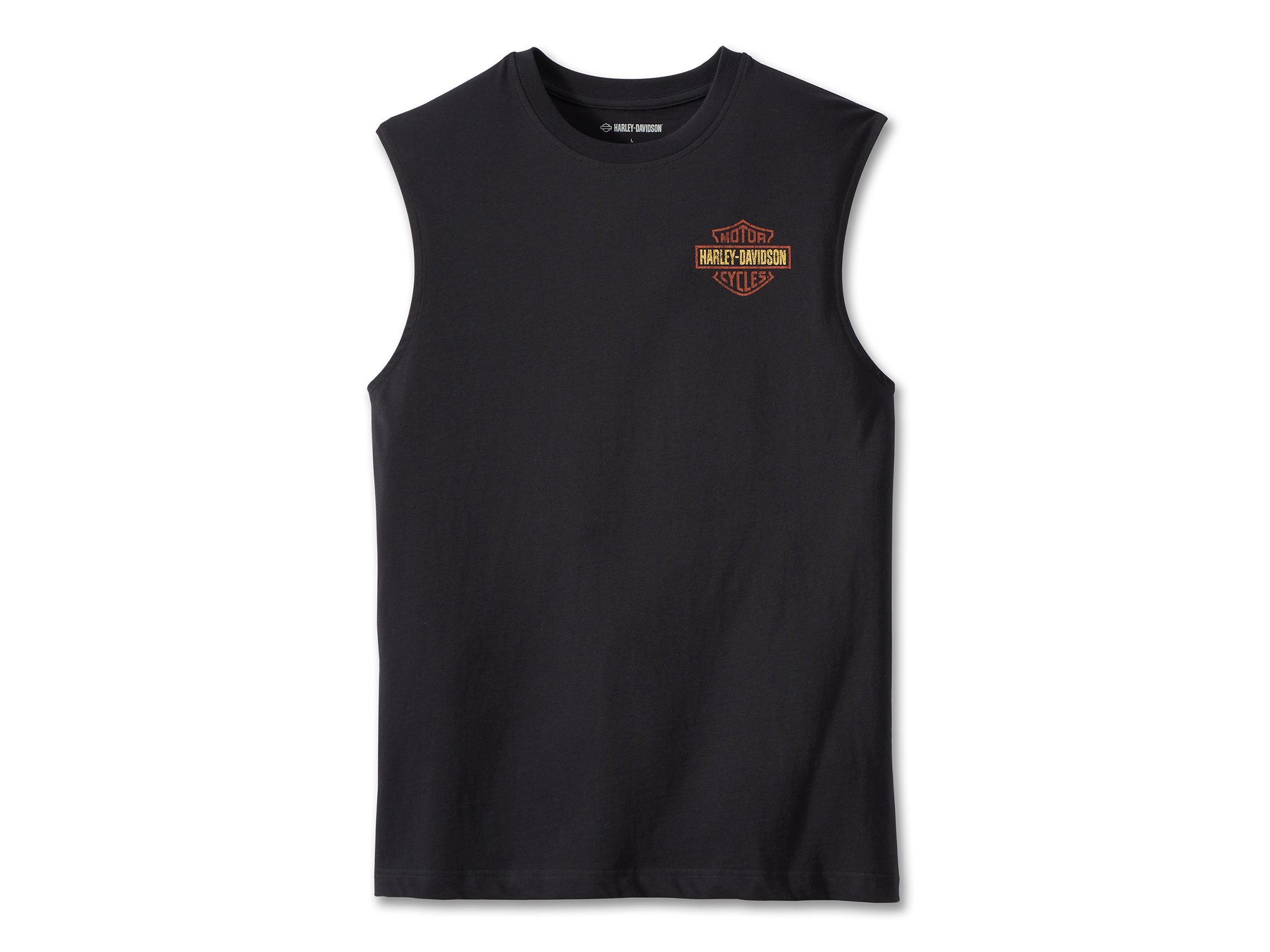 For sleeveless biker style that's just in time for summer, order our Limited Edition Classic Eagle Blowout Tee. Crafted for day-into-night comfort from breathable cotton jersey, it's available in a traditional and slim fit custom silhouette. Proudly branded for a throwback vibe that declares your devotion to the open road. Know the history—the screeching eagle on back is inspired by our Eagle logo that appeared on tank decals for our 1976 models honoring America's 200th Bicentennial Anniversary. Remember to get it sooner than later since supplies are limited.