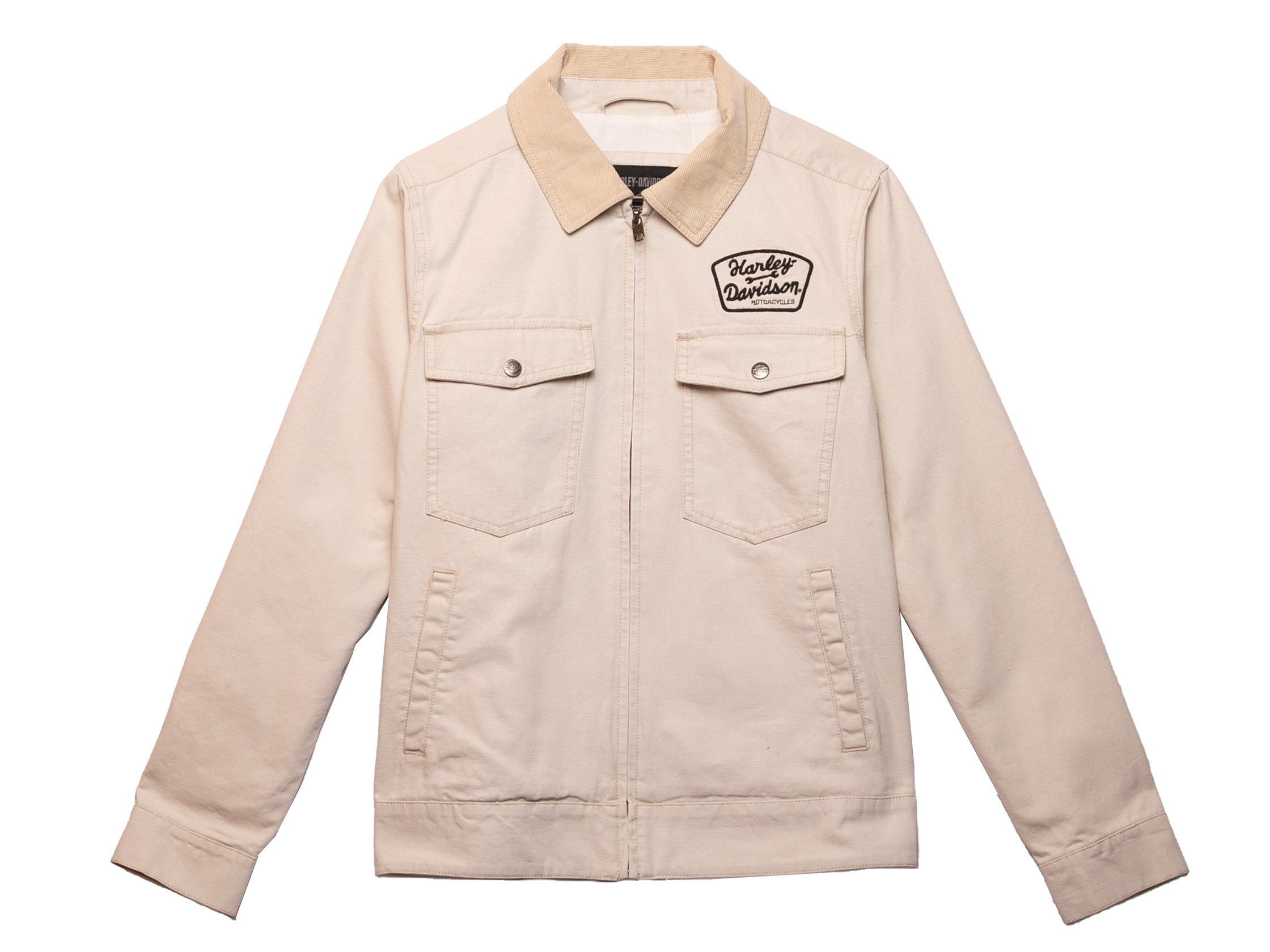 Throwback style gets a hit of enthusiast pride in our Limited Edition Mechanic Canvas Jacket. Durably made from cotton canvas that's enzyme stone washed for softness and a well-worn look. Its mechanic silhouette has stylish touches like a contrasting corduroy collar and roomy snap-flap chest pockets. Finished with distinctive, garage-inspired graphics on the front and a freedom-inspired version of our Bar & Shield perched big on the back. Though its look is timeless its quantities aren't, so order sooner rather than later. While you're at it, complete your stylish mechanic look—pair this jacket with our Limited Edition Shift Gears Plaid Shirt.