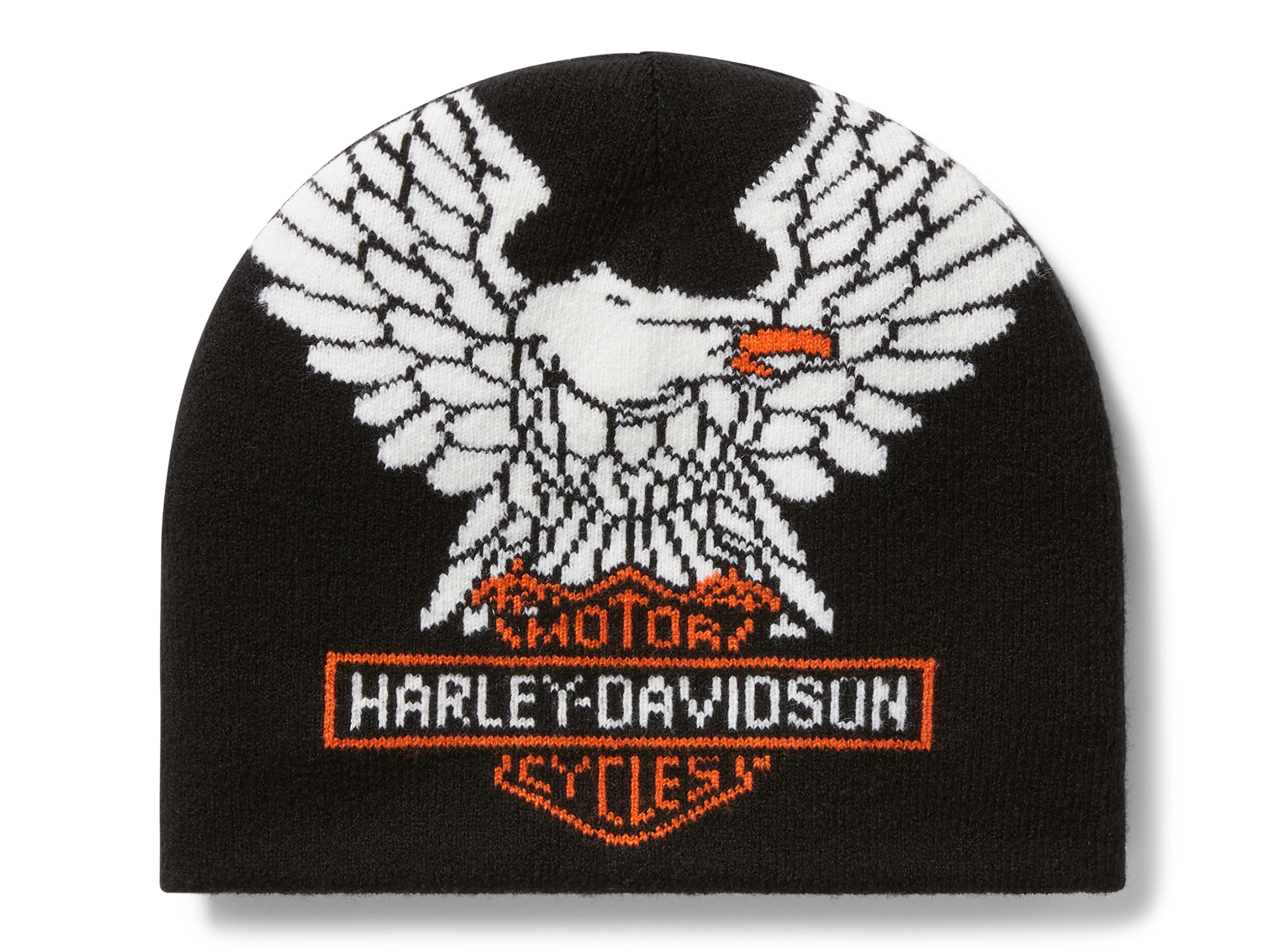 Stay warm two ways in our Eagle Strike Reversible Beanie. Made from acrylic with a hit of nylon and elastane for added stretch that delivers longwearing comfort. Go with our namesake side to keep it simple, or let your moto style soar with the distinctive eagle option. In fact, the eagle here is inspired by a 1982 Milwaukee Iron tee from our archives.