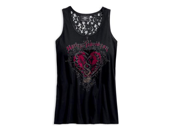 Material: 60% Baumwolle, 40% Modaljersey vorne. 92% Nylon, 8% Elasthan-Spitze hinten. Wildlederartiger Ausschnitt und Armlochverzierung. Geflockte und gedruckte Grafiken mit Strass-Stein.