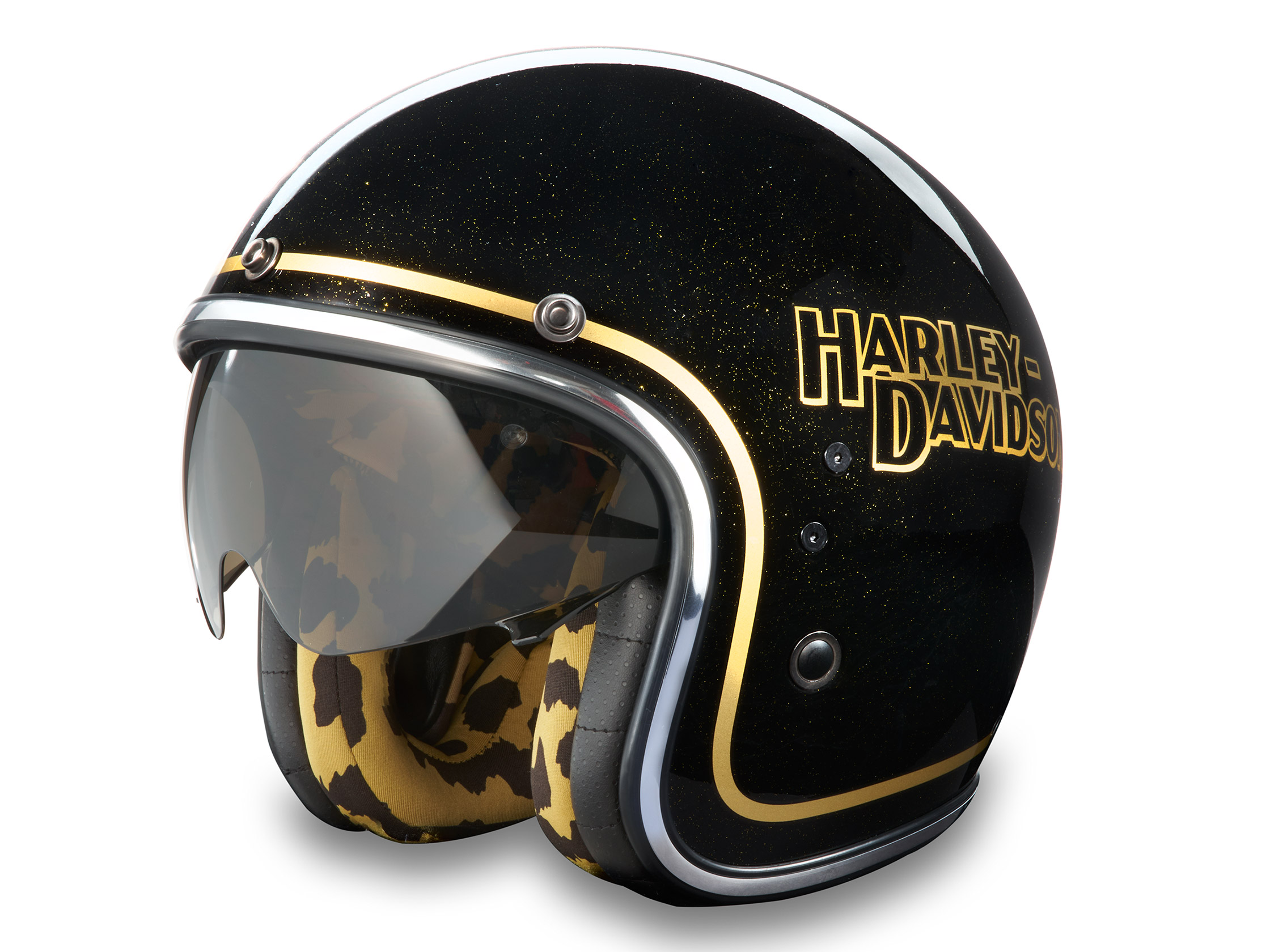 Mit dem H-D X14 Sun Shield Jethelm bist Du geschützt, während Du klare Sicht auf die Straße hast. Gefertigt aus vorimprägnierten Glasfasern und mit einem klappbaren, kratzfesten Sonnenschutzvisier, das bei wechselnden Lichtverhältnissen für eine sofortige Entlastung der Augen sorgt. Sein luxuriös vernähtes Innenleben sorgt für ein angenehmes Tragegefühl, insbesondere durch das herausnehmbare und waschbare, feuchtigkeitsabführende Innenfutter. Die Innenseite ist mit einem speziellen Allover-Tier-Druckmotiv versehen, während die Außenseite mit einem glänzenden Metallic-Finish und einem auffälligen Branding für einen wirklich einzigartigen Harley-Davidson Look sorgt.