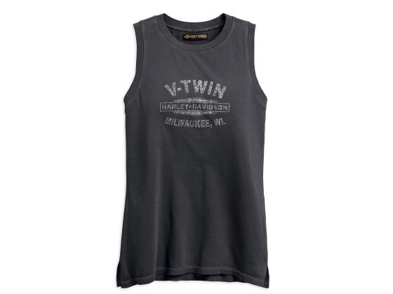Künstlich gealterte Grafiken und eine vollkommene Stoffbehandlung verleihen unserem Studded V-Twin Muscle T-Shirt einen sonnenausgeblichenen Look. Die Grafiken an der Rückseite statten wir mit klobigen Nieten aus und verleihen diesem ärmellosen Damen-Top damit einen Heavy-Metal-Look. 100% Baumwolle.