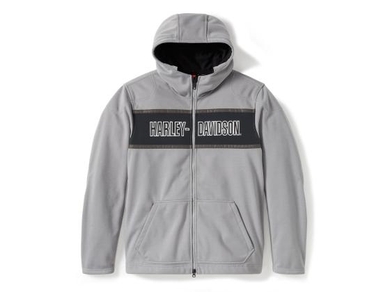 Unser H-D® Trenton Deflector 2.0 Motorrad-Fleece mit Kapuze kombiniert lässigen Stil mit funktionellem Schutz beim Fahren. Diese neue Herren-Motorradjacke wurde auf Abriebfestigkeit, Reißfestigkeit und Nahtfestigkeit getestet und zertifiziert. Sie bietet Aufpralldämpfung durch unsere D3O® Ghost" Protektoren an den Schultern und Ellbogen. Außerdem haben wir den Belüftungsbereich vergrößert, um die Luftzirkulation zu verbessern, reflektierendes Material für erhöhte Sichtbarkeit hinzugefügt und eine Reißverschlusstasche für sichere Aufbewahrung an der rechten Kängurutasche angebracht. Die Jacke besteht aus schwerem, beschichtetem Material mit atmungsaktivem Netzfutter, ist winddicht und verfügt über eine Kapuze mit einstellbarem Knebelzugband und Reißverschluss, um den Luftwiderstand während der Fahrt zu verringern. Kontrastierende Einsätze und unser gesticktes Branding sorgen für einen modernen, absolut straßentauglichen Look. Sieh Dir unten alle weiteren Merkmale an und sichere Dir dann schnell Dein Exemplar, denn die Stückzahlen sind begrenzt.