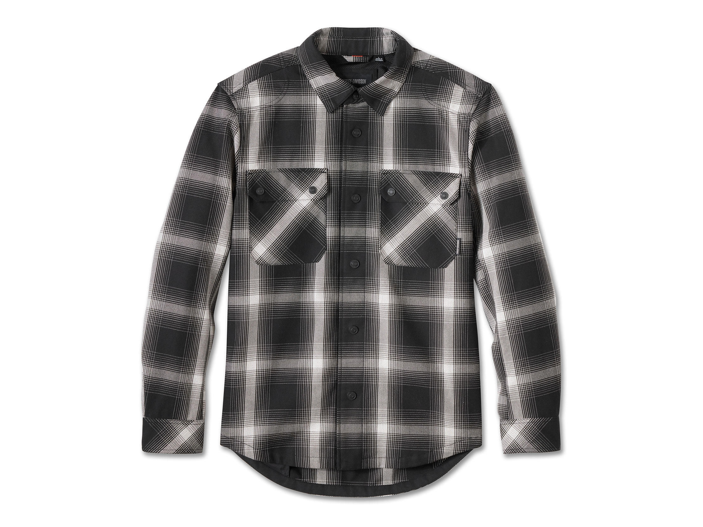 Bei unserer Limited Edition H-D Operative 2.0 Motorrad-Hemdjacke trifft Karo auf praktischen Schutz. Sie ist aus schwerem Twill aus Baumwolle und Polyester gefertigt und weniger gefüttert, wodurch sie sich eher wie ein Hemd als wie eine Jacke anfühlt. Diese Motorrad-Hemdjacke für Herren verfügt außerdem über Belüftungsöffnungen unter den Armen und reflektierendes Material, um die Sichtbarkeit zu erhöhen. Sie ist mit hervorragender Aufpralldämpfung durch unsere D3O Ghost Protektoren an Schultern und Ellbogen ausgestattet und besitzt einen Kragen mit versteckten Druckknöpfen, der beim Fahren an seinem Platz bleibt. Außerdem haben wir auf der rechten Seite eine Tasche mit Reißverschluss angebracht, in der Du Deine wichtigsten Utensilien sicher verstauen kannst. Dieser Favorit unter Motorradfahrern hat ein zeitloses Karomuster mit minimalem Branding auf der Vorderseite und auf dem Rücken unverwechselbare gestickte Motive im Old-English-Stil. Sieh Dir unten die restlichen Merkmale an und bestelle Dein Exemplar jetzt, da die Stückzahlen begrenzt sind.