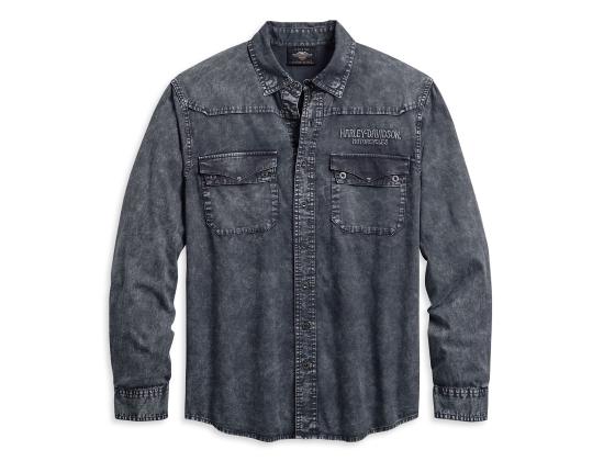 Wir präsentieren das Serpent Skull Long Sleeve Shirt. Sehen Sie sich die beeindruckende Originalkunst auf der Rückseite an, die garantiert für Staunen sorgen wird. Dieses langärmelige Herrenshirt aus robustem Baumwoll-Twill im Washed-Look erzeugt einen unauffälligen Style. Es lässt sich hervorragend mit Ihrem Lieblings-Grafik-T-Shirt kombinieren.