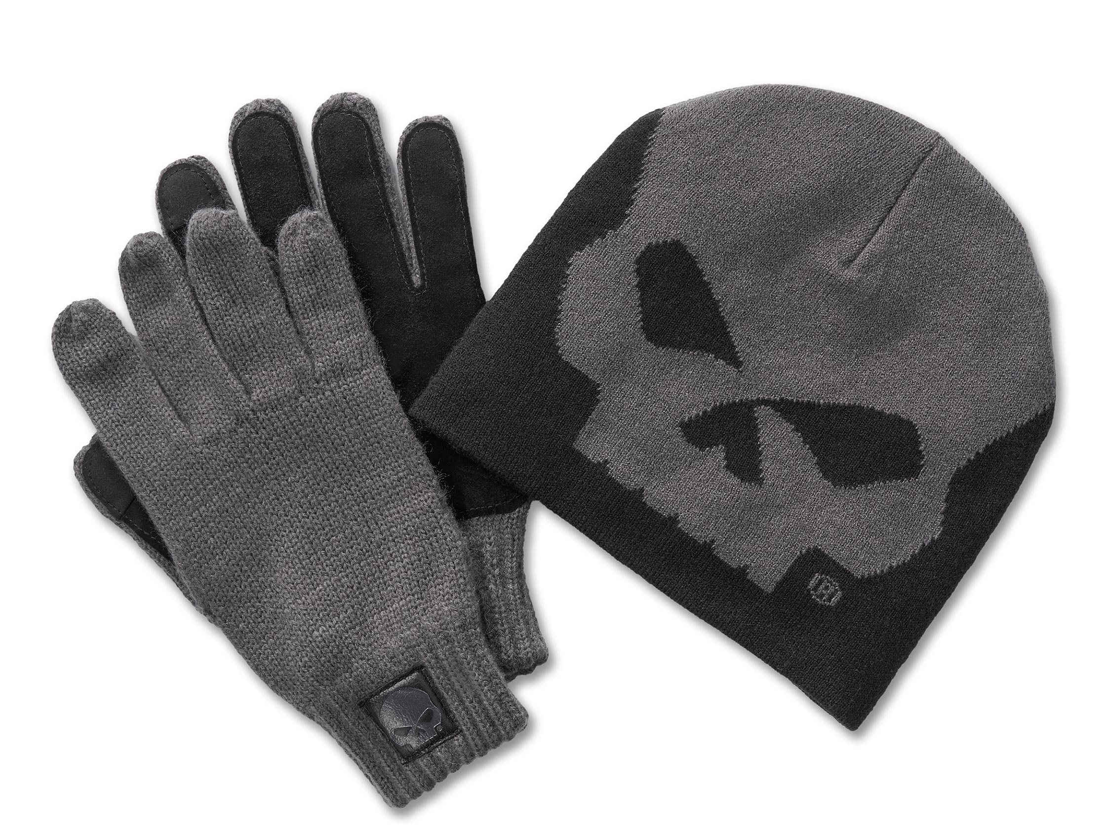 Halte Dich warm mit dem Limited Edition Willie G" Skull Beanie und Handschuhe Geschenkset, das ein kreatives Erbe ehrt. Die Mütze ist aus Acrylstrick gefertigt, mit einem Schuss Elastan für zusätzliche Elastizität. Die Touchscreen-geeigneten Handschuhe sind aus einer Mischung aus Acryl/Elastan-Strick mit einer Handinnenfläche aus Ziegenleder. Das legendäre Skull Motiv von Willie G. Davidson ist mit einem kräftigen Farbakzent aufgepeppt, um die Arbeit des Chief Styling Officer unserer Marke zu würdigen. Kleine Geschichtslektion: Neben Motiven wie diesem hat Willie G. auch mehrere H-D® Motorräder entworfen, darunter die 1971er FX Super Glide® und die 1977er FXS Low Rider®. Bestelle dieses Set jetzt, bevor es vergriffen ist!