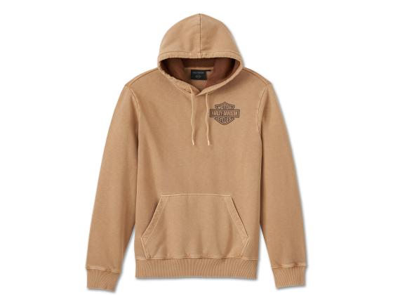 Das Eagle Soars Alone Slub Hoodie feiert unsere stolze Unabhängigkeit im Retro-Stil. Dieser Kapuzenpullover in entspannter Passform ist aus schwerem Fleece aus genoppter Baumwolle gefertigt, das für einen getragenen Look und ein angenehmes Tragegefühl gefärbt wurde. Mit Motiven, die unserer wechselvollen Geschichte huldigen. Tatsächlich markierte der Slogan "The Eagle Soars Alone” auf dem Rücken den Zeitpunkt, als Harley-Davidson nach der Trennung von AMF im Jahr 1981 wieder zu einem Privatunternehmen wurde.