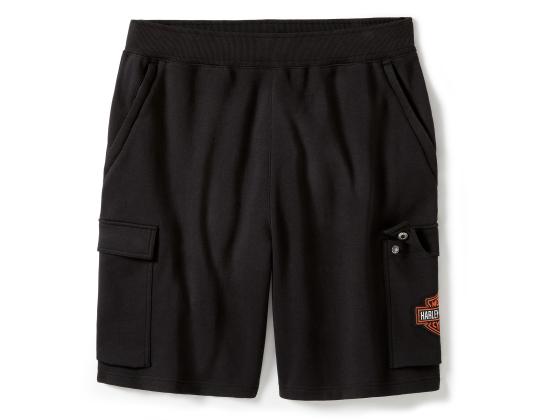 Verleihe deinem sportlichen Look ein H-D-Upgrade mit unserer Essential Fleece Cargo Short. Die klassische Walking-Short-Silhouette besteht aus schwerem Baumwoll-/Polyester-Interlock für langanhaltenden Komfort und Strapazierfähigkeit. Ausgestattet mit einem flexiblen Bund mit Kordelzug und sicheren Taschen für deine Essentials. Abgerundet wird das Design durch eine Direktstickerei mit unserem ikonischsten Logo.
