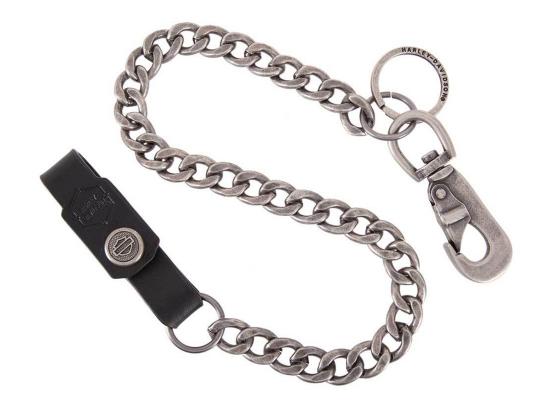 Harley-Davidson Geldbeutelkette "Spare Parts". Antikes Nickel Finish. Echtleder-Gürtelschlaufe mit Druckknopf. Hochbelastbare 25" (ca 63,5 cm) Kette.