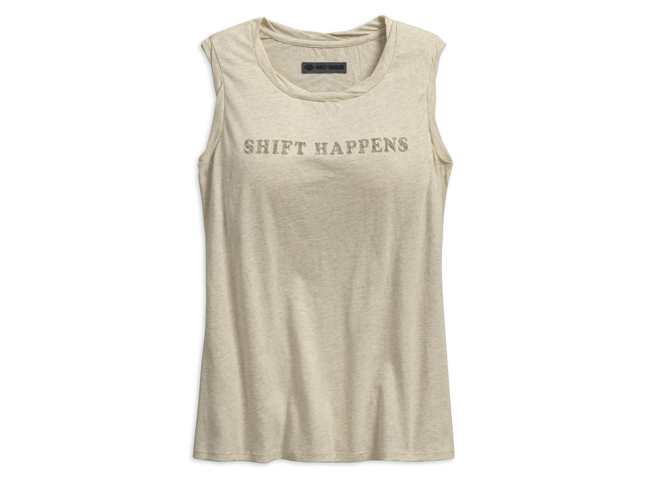 100% Baumwolle. Verdrehte Bindung an Hals und Armlöchern. Used-Look Druckgrafiken auf Vorder- und Rückseite.