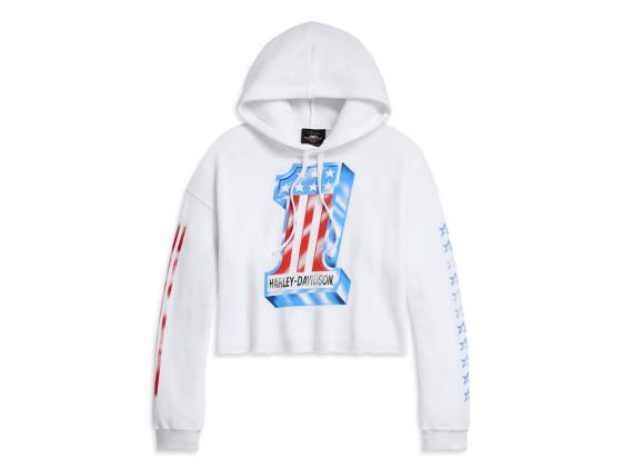 Ihre Lieblingsjeans verdienen eine kuschelige Schicht, die sich behaupten kann, wie der Bars & Stars Cropped Hoodie für Frauen. Weicher, weißer Fleece ist der gewählte Stoff, der den ganzen Tag über Komfort bietet. Auf der Vorderseite dieses Damen-Kapuzenpullovers ist eine aufwendige Grafik aufgedruckt. Sterne und Streifen an den Ärmeln sind unerwartete, aber willkommene Akzente. Und um den Stil nach Hause zu bringen, schneiden wir ihn leicht ab, indem wir den traditionellen Rippenbund abschneiden, um eine raue Kante zu zeigen. Tiefhängende Schultern sorgen für einen lässigen, entspannten Look. Materialien: 52% Baumwolle, 48% Polyester-Fleece.