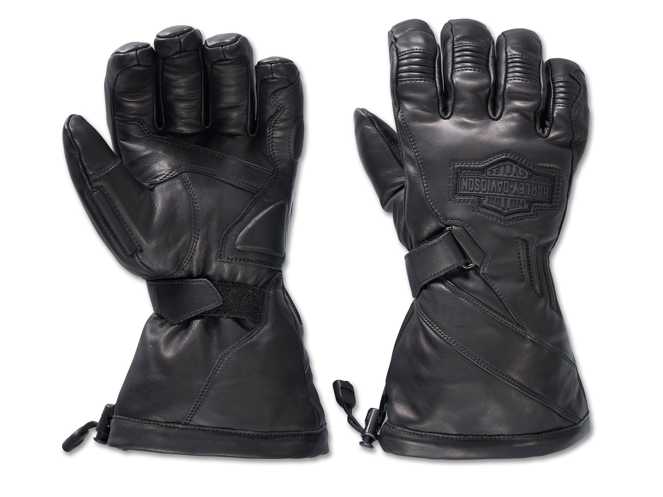 Mit den wasserdichten Circuit II Leder-Stulpenhandschuhen haben wir einen langjährigen Biker-Favoriten noch besser gemacht. Gefertigt für maximale Abdeckung und Komfort aus Rindsleder mit verbesserter Wasserdichtigkeit und wärmender 3M" Thinsulate" Isolierung. Diese Vollfinger-Motorradhandschuhe, die Deine Handgelenke abdecken, verfügen außerdem über gepolsterte Handflächen gegen Vibration und eine Wischleiste für bessere Sicht. Minimales Branding sorgt für einen vielseitigen Look, der zu jeder Deiner H-D® Motorradjacken passt.
