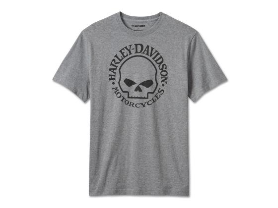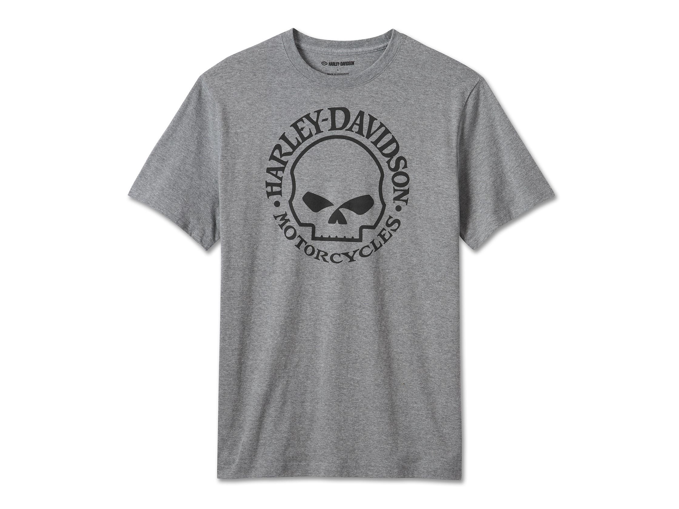Ein lässiger Klassiker wurde neu gestaltet, um die offene Straße zu ehren, mit unserem Skull Graphic T-Shirt. Mit einem Rippstrickkragen, der seine Form behält. Verziert mit einem dynamischen Druck unseres angesehenen Willie G" Skulls auf der Vorderseite - diese Grafik von der Daytona Bike Week 2000 ist immer noch ein Favorit unter Enthusiasten.