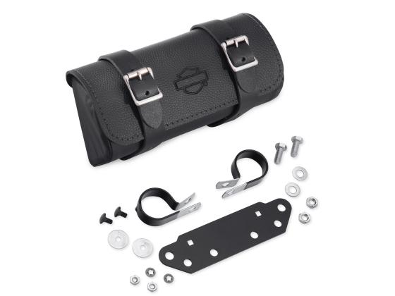 Der perfekte Ort, um ein paar Werkzeuge, einen Reifendruckmesser oder Ihr Scheibenschloss unterzubringen. Die steif verstärkte Tasche besitzt eine stilvolle schwere Lederlasche und einen traditionellen Verschluss mit Riemen und Schnalle, um sowohl Funktion als auch Flair zu bieten. Einfache Montage. Die Tasche ist durch die niedrige Platzierung unauffällig, erlaubt jedoch dennoch einen schnellen Zugriff. Kit inklusive aller erforderlichen Montageteile.